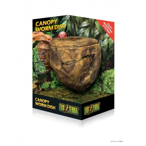 O Exo Terra Canopy Worm Dish evita que as larvas de insectos escapem, enquanto permanecem visíveis para os habitantes do terrário. As larvas de insecto precisam ser contidas quando são colocadas dentro do terrário. Caso contrário, rapidamente "escapam" cavando o seu caminho no substrato e perdem rapidamente seu o revestimento vitamínico. O conveniente sistema de clipes permite que você remova facilmente o prato para uma recarga ou limpeza. O Exo Terra Canopy Worm Dish é construído em duas partes para facilitar a limpeza.