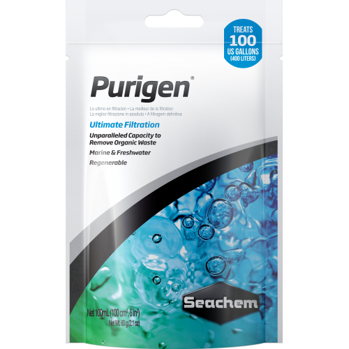 Purigen® é um adsorvente sintético premium que é diferente de qualquer outro produto de filtragem. Não é uma mistura de trocadores de íons ou adsorventes, mas um polímero sintético macroporoso exclusivo que remove as impurezas solúveis e insolúveis da água a uma taxa e capacidade que excede todos os outros produtos concorrentes em mais de 500%. Purigen® controla amónia, nitritos e nitratos removendo resíduos orgânicos nitrogenados que de outra forma libertariam esses compostos nocivos. O impacto de Purigen nos oligoelementos é mínimo. Aumenta significativamente o redox. Limpa a água com uma clareza incomparável. Purigen® escurece progressivamente à medida que se esgota e é facilmente renovado por tratamento com lixívia. Purigen® foi projetado para uso em água doce e salgada.