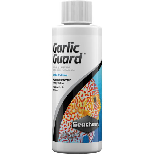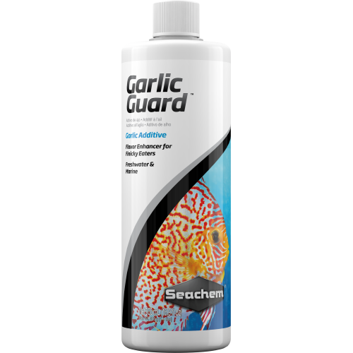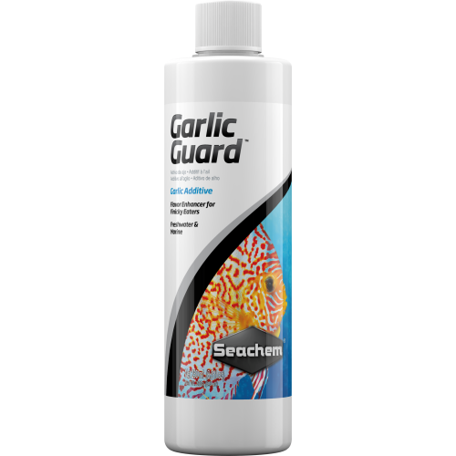 GarlicGuard™ é um intensificador de odor e sabor com cheiro natural de alho para peixes de água doce e salgada. A nossa pesquisa mostrou que muitos peixes são atraídos por odores naturais, como o alho. Basta misturar o GarlicGuard™ com qualquer item alimentar, como os flocos NutriDiet® da Seachem, para atrair o interesse de comedores mimados, por exemplo. Disco e peixe anjo marinho. GarlicGuard é seguro para recifes e aquários plantados.