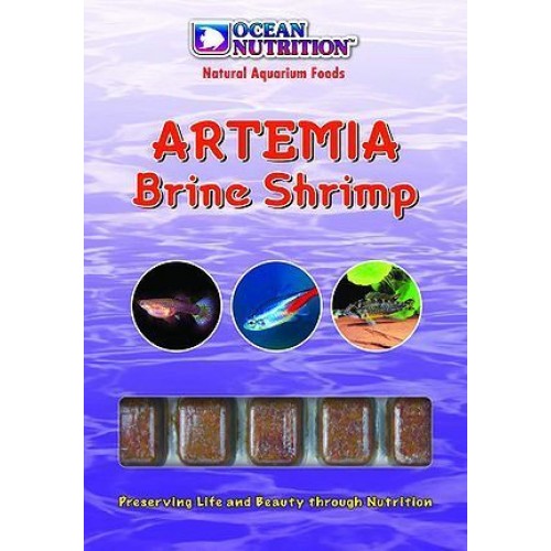 Artémias vivas inteiras que foram rapidamente congeladas com o nosso “flash-freezer” resultando em animais inteiros e um mínimo de lixiviação de nutrientes na água do aquário.