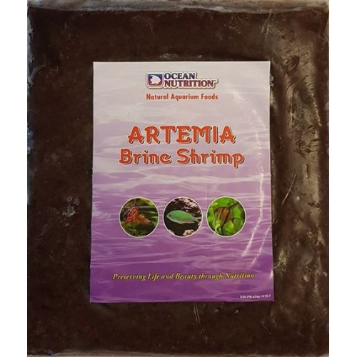 Artémias vivas inteiras que foram rapidamente congeladas com o nosso “flash-freezer” resultando em animais inteiros e um mínimo de lixiviação de nutrientes na água do aquário.
