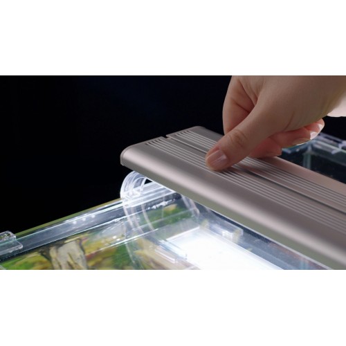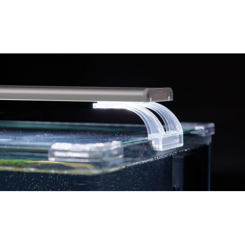 Luminária LED com design fino e suportes ajustáveis em acrílico transparente, o que a torna a combinação perfeita para o seu Kubus Curve. Este sistema beneficia das inúmeras vantagens da tecnologia LED, como a economia, a durabilidade e a melhor qualidade da luz emitida.