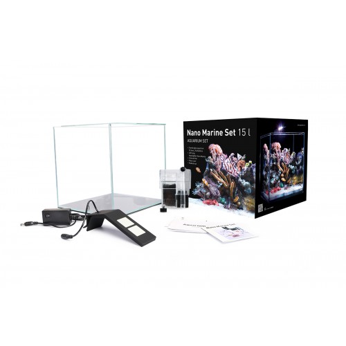 Nano Marine Set inclui aquário para peixes marinhos de 15 litros. Aquário para escritório e casa. Uma escolha perfeita para pequenos peixes marinhos, pequenos camarões e caranguejos marinhos, caracóis marinhos, corais moles e LPS. É uma excelente escolha para aquários pseudo-marinhos.