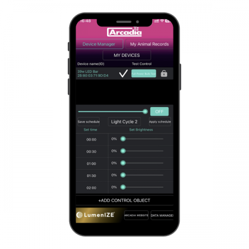 Depois de instalado, emparelhe este kit com o aplicativo LumenIZE gratuito e fácil de usar via Bluetooth. A partir deste aplicativo você pode controlar até 50 lâmpadas diferentes com facilidade e precisão, simulando a luz solar natural e criando padrões de iluminação do amanhecer ao anoitecer que seu precioso réptil irá adorar. Você também pode usar o aplicativo para aumentar e diminuir a luz à medida que as estações avançam, simulando uma abordagem muito mais natural e, o mais importante, segura para a desaceleração do inverno e o despertar da primavera.