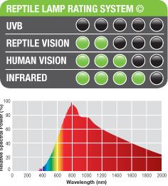 Uma lâmpada especialmente projetada como uma lâmpada de luz solar. O feixe estreito pode ser direcionado precisamente para uma área para criar um local de aquecimento. O calor e a luz no feixe aumentam em 35%, permitindo maiores distâncias entre a lâmpada e o local de aquecimento. A luz UVA (ultravioleta A) contribui para o bem-estar fisiológico dos répteis.